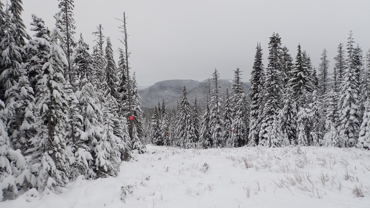 ~30°F, cloudy, light snow, low wind. Theres 2"-3" of fresh snow plus a few more inches beneath from the previous days. Visibility was pretty good, and low avalanche risk at low elevations.