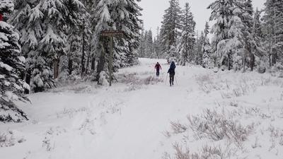 The Alpine and Glade trails connect Summit Ski Area to Timberline. The trails overall are fairly tame, without much to worry about from avalanches or getting lost (though not zero risk!), so perfect for beginners and getting back into things early season. Many folks will take the shuttle up to Timberline from Summit Lot, and take Alpine back down to their car at the end of the day.