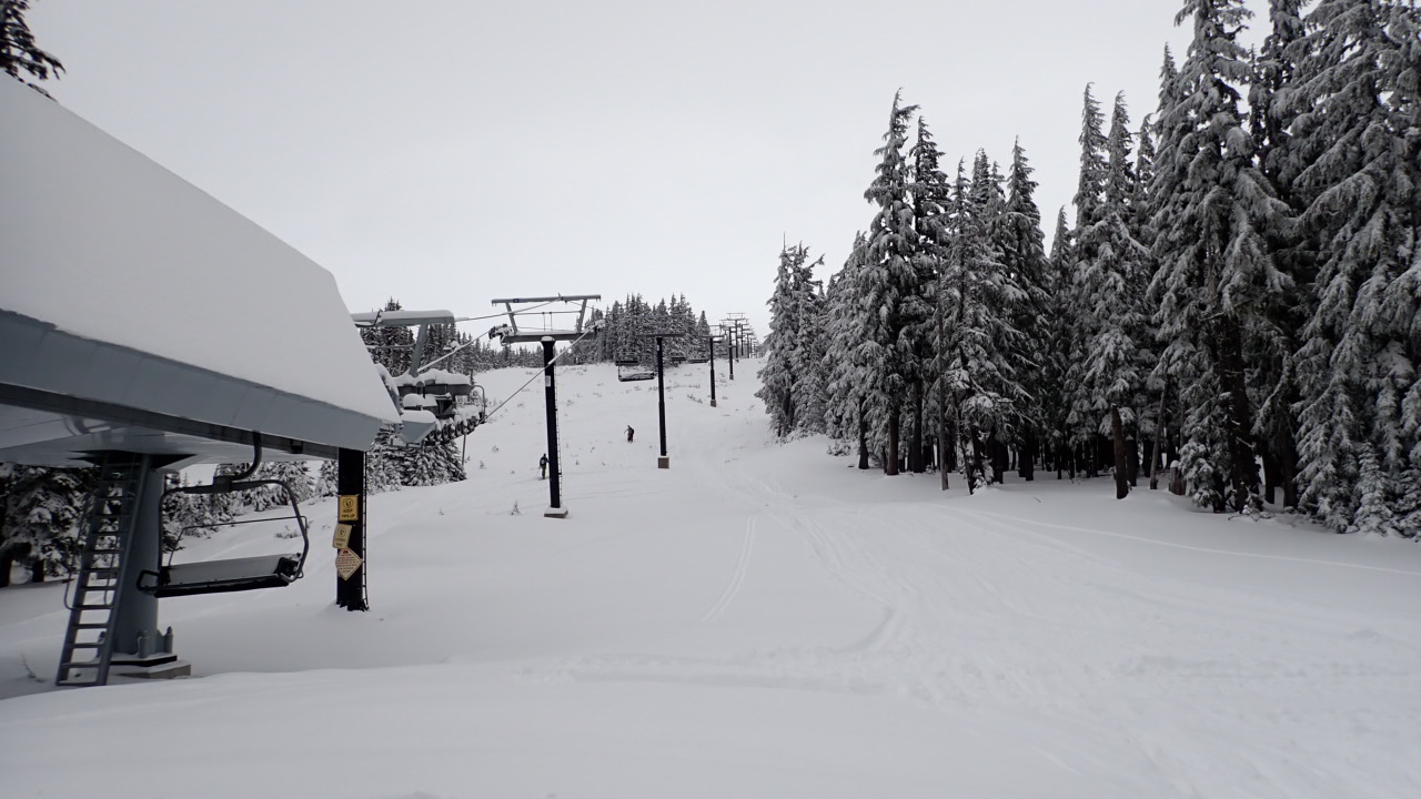 This was my first time touring the Alpine Trail. I got there around 10am, it took me about 2 hours to go from the Summit lot to the Stormin' Norman lift at Timberline, and about 15 minutes down. I was worried about the conditions coming in, but it ended up being a perfect window between the snow storm the day before and the heavy rain coming in the evening into the next day.